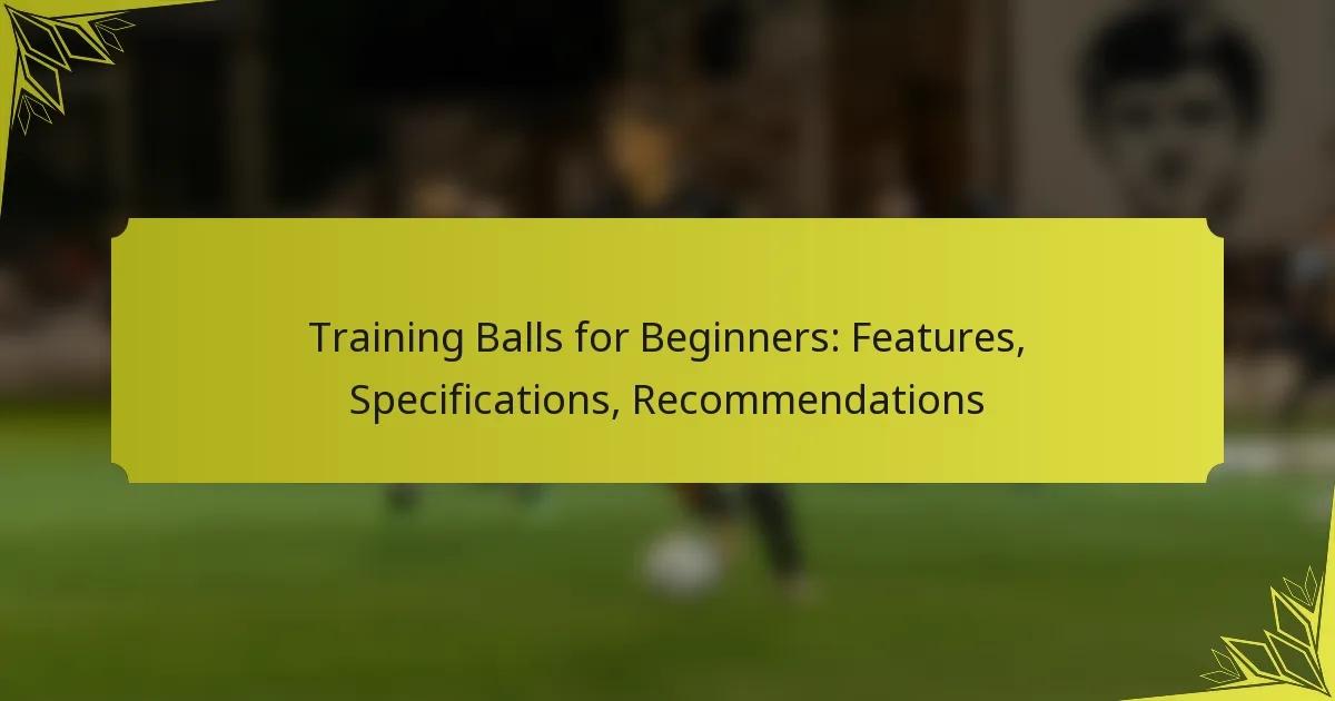 Key specifications for training balls include dimensions, materials, and performance metrics that ensure suitability for beginners. Selecting the right training ball can significantly impact skill development and overall training effectiveness.