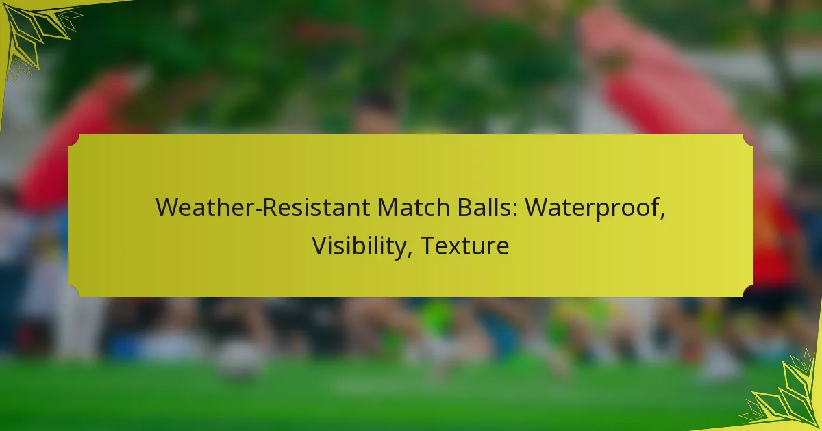 Weather-resistant match balls typically incorporate several key characteristics that enhance their performance. These include waterproof materials, high visibility colors, and textured surfaces for better grip. Each of these features plays a crucial role in ensuring the ball remains functional and effective in challenging weather.